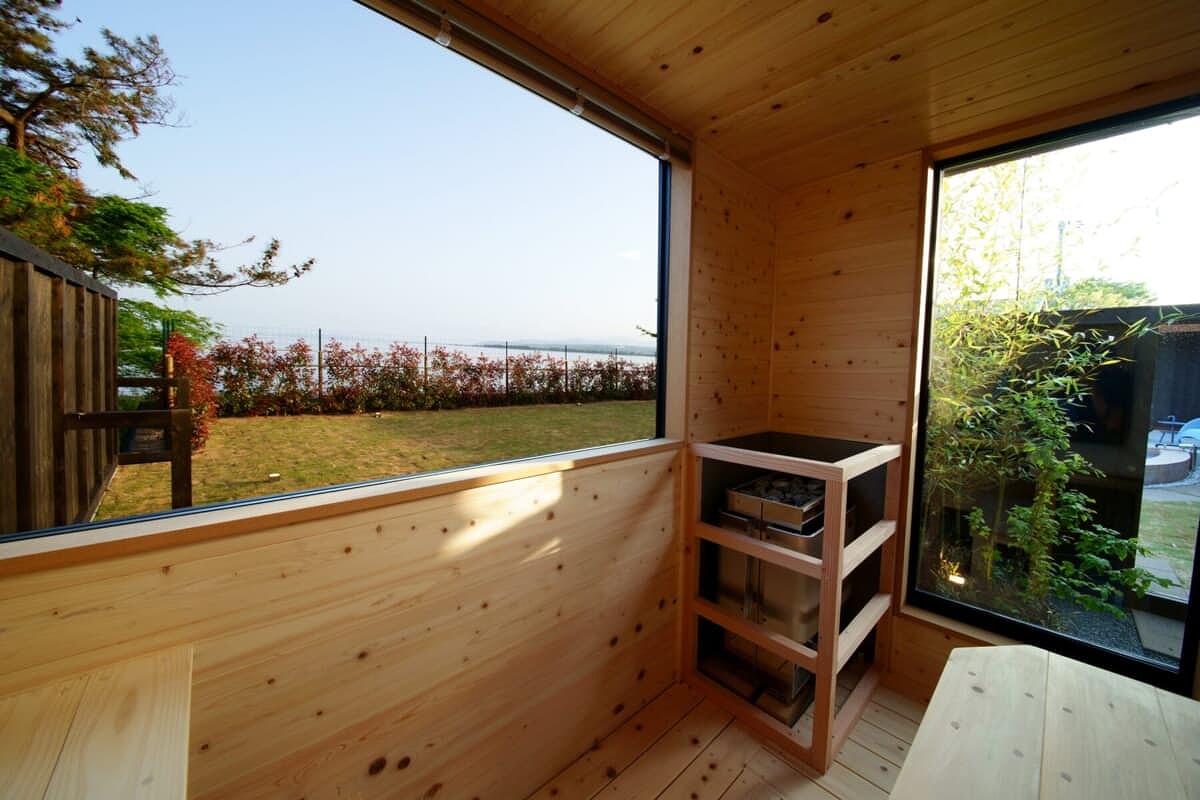 お部屋からは雄大な琵琶湖を一望。大人数でもゆったり寛げるリビング・プライベートデッキでBBQをお楽しみいただけます。